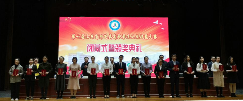 ▲学生参加山东省师范类高校学生从业技能大赛获奖