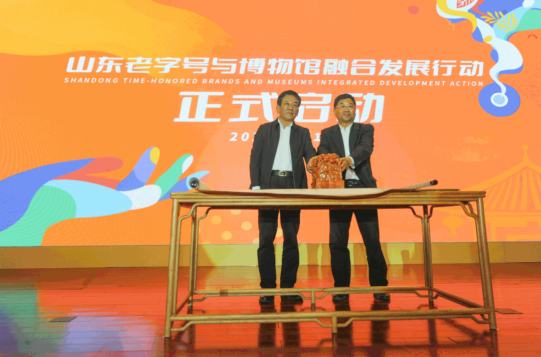 活动现场,省商务厅党组成员、副厅长王洪平,省文化和旅游厅党组成员、副厅长,省文物局副局长王廷琦共同启动“山东老字号与博物馆融合发展行动”,山东成为全国首个进行老字号与博物馆多维度、跨领域融合推进商文旅一体化发展的省份。山东博物馆与山东省老字号企业协会签署了“山东老字号暨非遗文化体验馆”协议。