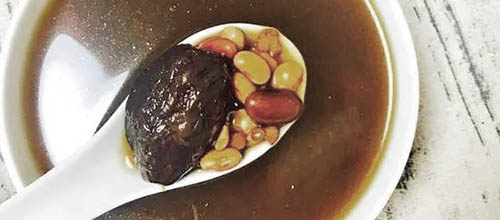 做法:黑豆(黑豆要用黑皮绿瓤的)、黄豆、绿豆各20g,乌梅5至10颗,白糖2勺,添水淹过豆子三个指节,用砂锅或者电饭锅熬2小时。煮好了以后就喝浓汤,当饮料喝。