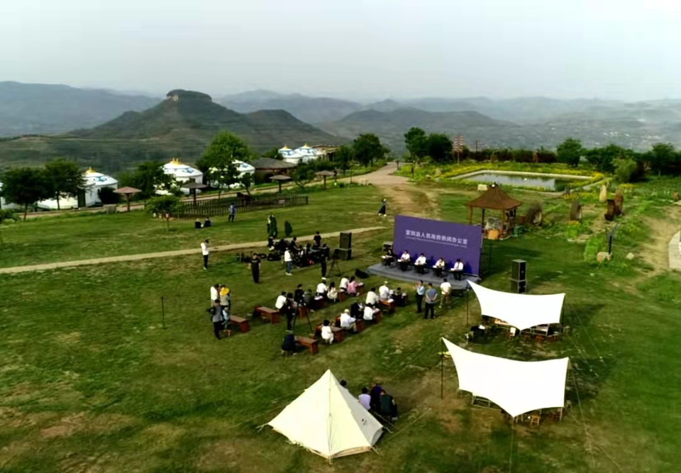 原名梭子崮的“崮上草原”,海拔612米。置身崮顶,远处群崮起伏、壮美如画。“崮乡十年·向群众汇报”,6月2日下午,一场别开生面的新闻发布会在这里举行。