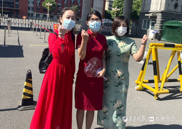 “今天穿得红色旗袍,也是希望孩子能够旗开得胜,红色也是寓意着开门红,希望孩子能够取得好成绩。”淄博五中学生的家长赵女士说。
