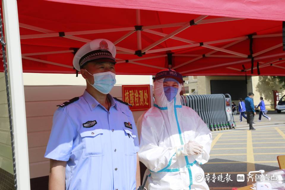 李东岳的父亲李广已经护考12年,他是招远交警大队一中队副中队长,本来应该休假的他,这次主动放弃休假机会,早早来到招远二中考点前,带领同事们进行交通管制,指挥疏导过往车辆。李广的妻子于香红是招远市人民医院妇科护士长,今天负责考生的核酸检测任务,也没有时间在家里陪儿子考试,只能让儿子在学校住宿。