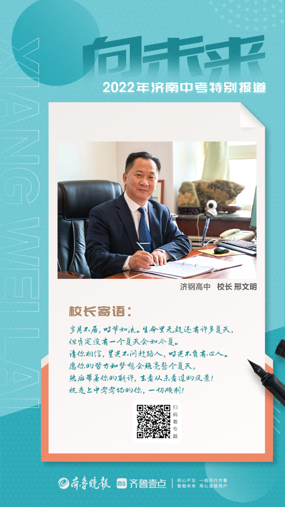 2022年济南初三学生学业水平考试(中考)将于6月12日至14日进行,一起来看看济南各高中学校校长送上的寄语祝福吧!(排序不分先后)