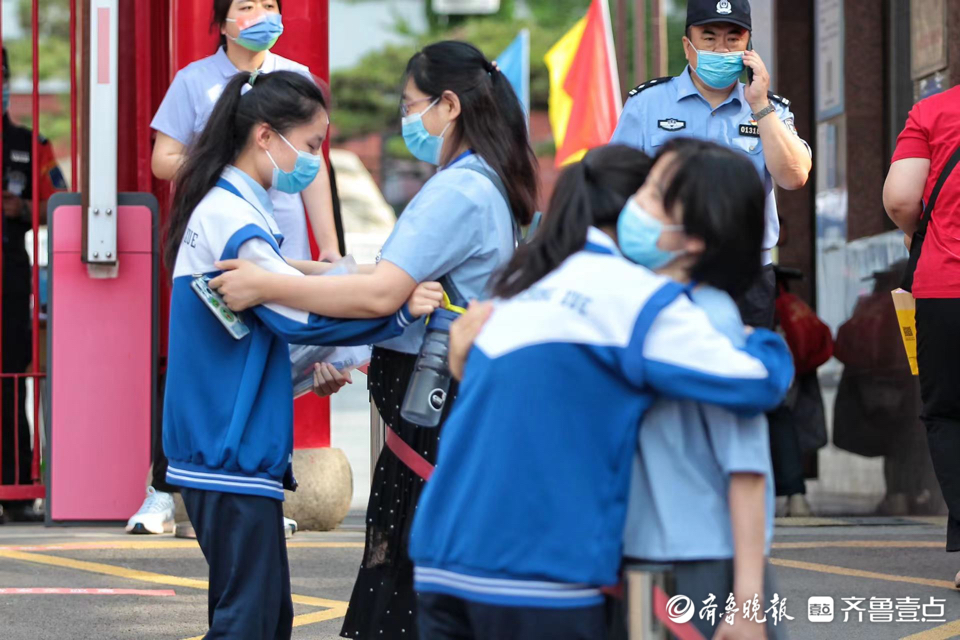 记者 王鑫 12日,2022年济南中考正式拉开帷幕。早上8点,山东省实验中学考点已有考生陆续进场。 考场外,学生与学生之间,家长与考生之间,老师与考生之间均进行了了充满“鼓励与爱”的拥抱,为考生进行最后的加油打气。