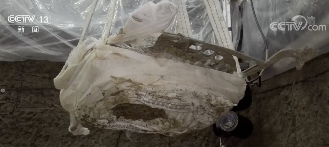 被发现时神坛就已经断裂,因此考古队员分两次进行了提取。