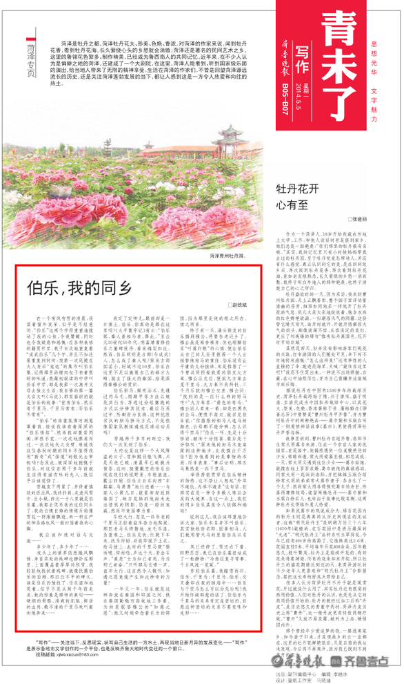 “菏泽是我的故乡,是生我养我的地方。”赵统斌有晨练的习惯,每天都会赋诗一首。时至今日,已经难以计算到底作过多少诗词。不过,在他的文学创作中,始终能够看到对曹风古韵新辉的描写,他在用自己的方式,努力展现给世人一个生动、立体、独特的菏泽。