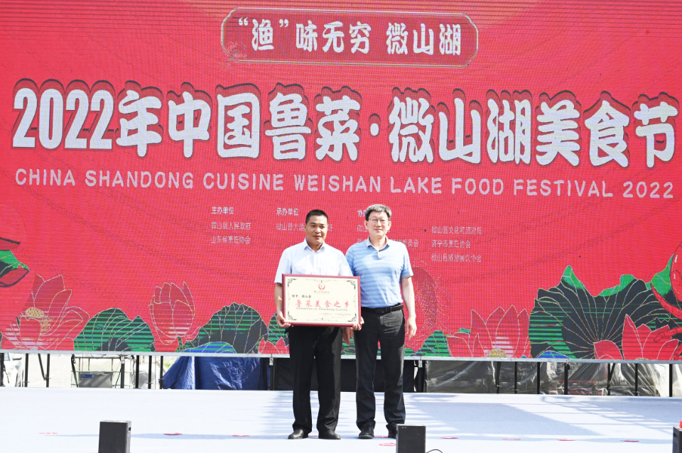 “今年我们联合齐鲁晚报·齐鲁壹点打造区县餐饮经济地方美食名片,助推城市品牌发展,微山被授予‘鲁菜文化之乡’。”山东省烹饪协会会长张雷介绍,省烹饪协会齐鲁晚报·齐鲁壹点参与微山湖美食节的目的就是让微山淡水鱼地理标志食材走向山东各地,走向全国各省,助力微山经济振兴。