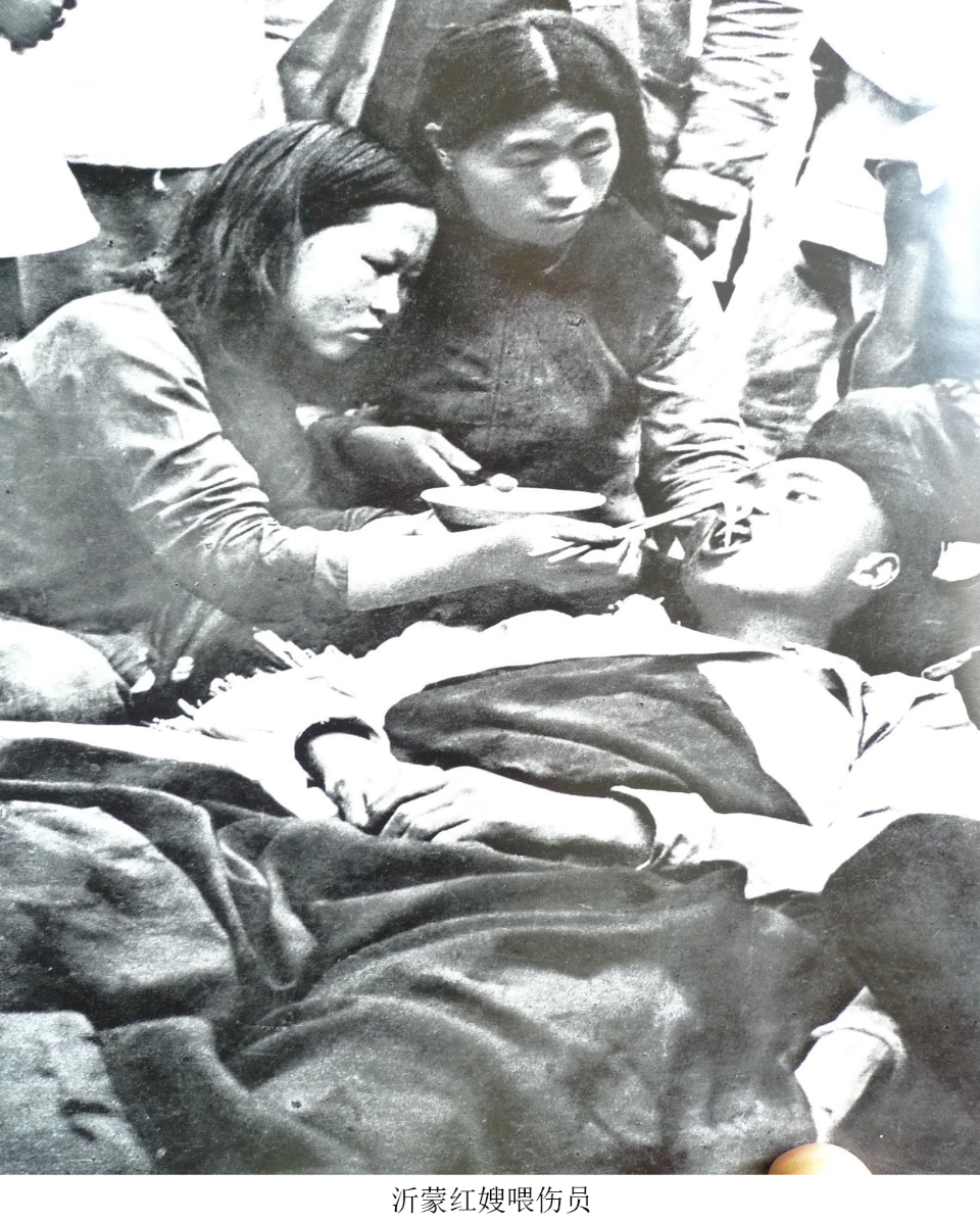 其次,“军民情深”,作为沂蒙精神“新内涵”的表征和亮点,体现了人民军队为人民安危而赴汤蹈火、出生入死的勇敢牺牲精神和人民群众为拥军支前而毁家纾难、参军参战的无私奉献精神,是一种由知到情的陶冶和化育。这种“军爱民、民拥军”的同频共振,铸就了“军民团结如一人”的钢铁长城,是沂蒙精神的主体和砥柱。提起“军民情深”,自然使我们联想起《八路军拥政爱民公约》、喊出“谁第一个报名参军,我就嫁给谁”的梁怀玉、“朝阳官庄彭大娘”,以及渊子崖自卫战、大青山突围战、孟良崮战役、淮海战役、南下干部等。