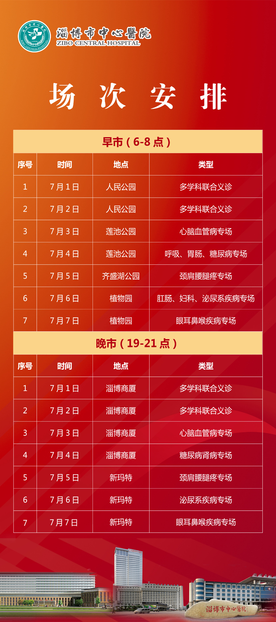 由淄博市卫生健康委、淄博市城市管理局主办,淄博商厦集团、淄博市中心医院承办的“医心向党领航健康——淄博市中心医院‘健康早(晚)市’大型义诊周”活动,7月1日将正式启动。