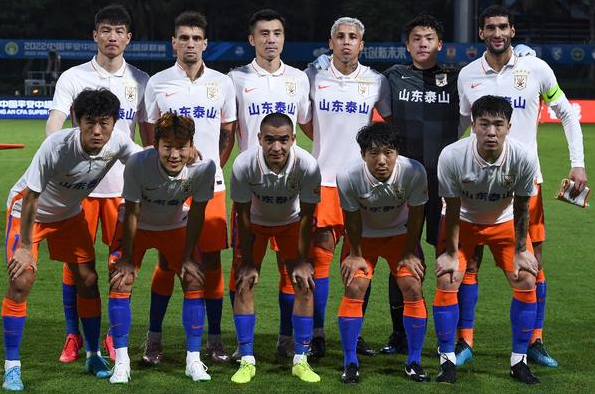 山东泰山首发:14-王大雷、5-郑铮、11-刘洋、27-石柯、10-莫伊塞斯、21-刘彬彬、25-费莱尼、28-孙准浩、33-金敬道、37-吉翔、9-克雷桑