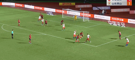 第14分钟,刘彬彬左路左脚传中,克雷桑禁区内直接头球攻门,帮助泰山队取得领先。