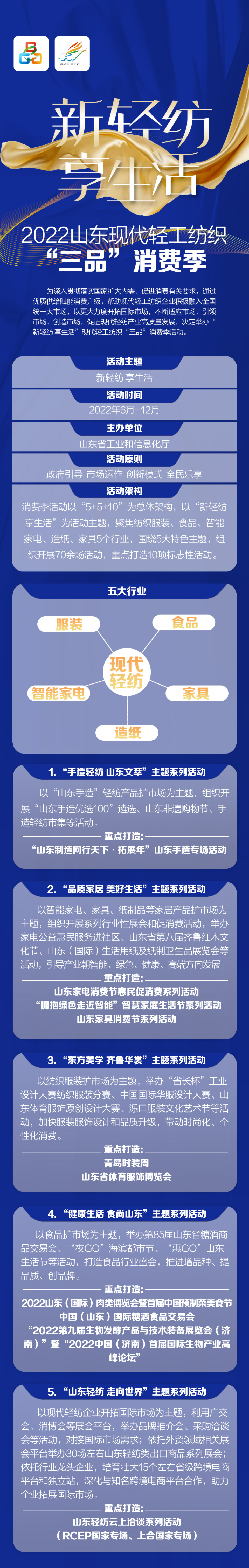 一图了解“新轻纺 享生活”2022山东现代轻纺“三品”消费季 大众报业·齐鲁壹点 2022-07-08 4.8万 齐鲁壹点记者 王 红 设计 胡顺云 7月8日,由山东省工业和信息化厅主办的“新轻纺 享生活”2022山东现代轻工纺织“三品”消费季正式启动。作为2022“三品”全国行的首站活动,山东“三品”消费季将以“5+5+10”的整体架构开展70余场活动、展会。 责任编辑:王红