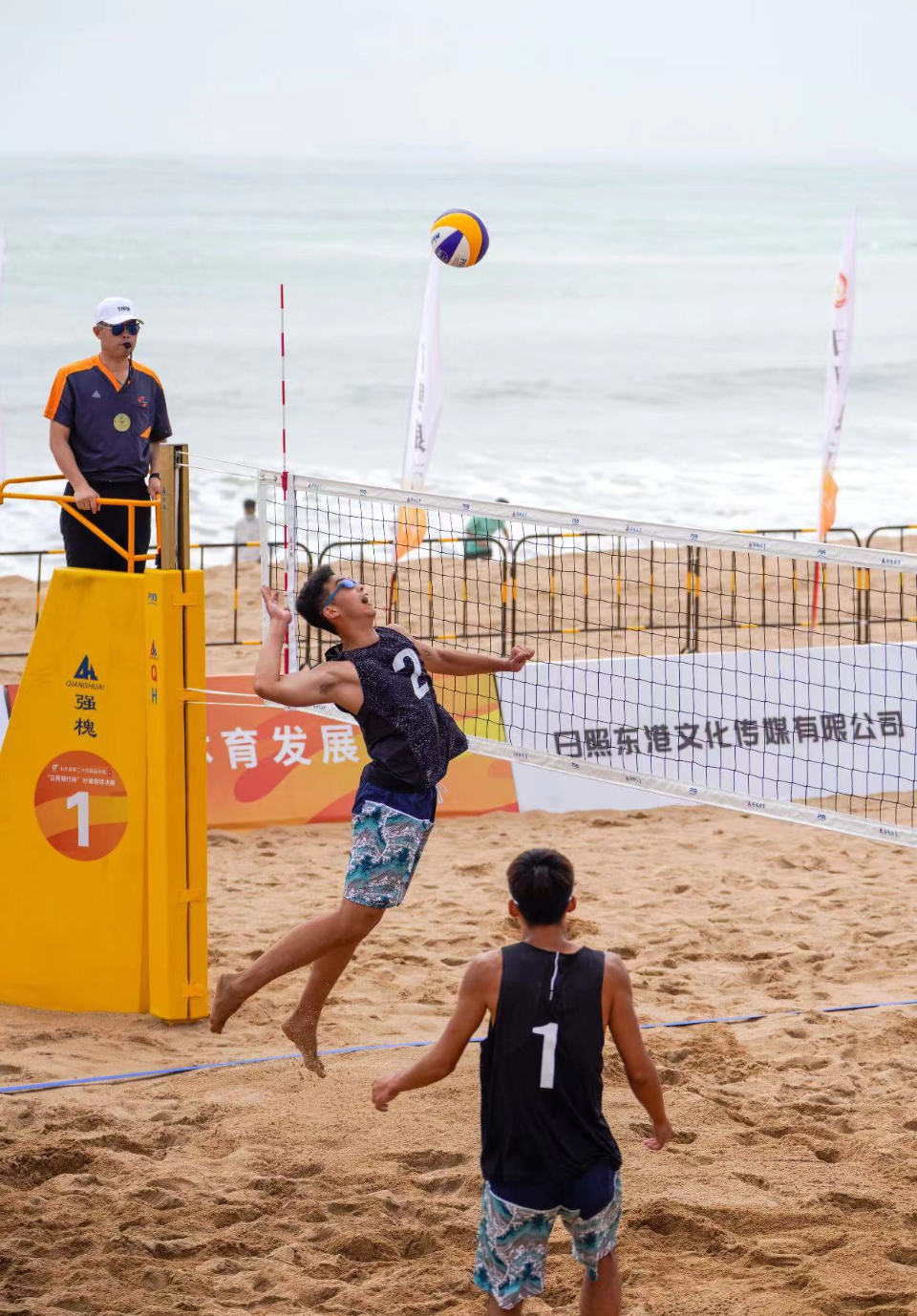 7月21上午,山东省第二十五届运动会“日照银行杯”沙滩排球决赛在日照市万平口海洋公园开赛。