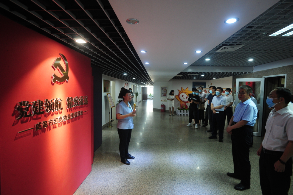 调研人员一行第一站来到了威海市红色物业党建基地。这是推动“精致城市·幸福威海”建设的一处党群服务中心,总面积约2200平方米,设有党员活动室、红色物业大讲堂、红盟议事厅、智慧物管平台、招投标有形市场等多个功能区,融党建活动开展、物业矛盾调处、行业素质提升、智慧物管平台、物业招投标等功能于一体,是威海市红色物业工作的“党建主阵地、文化主窗口、智慧总枢纽、培训大本营”。