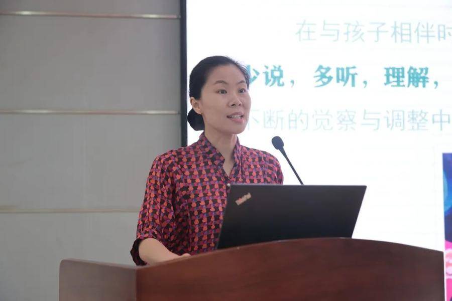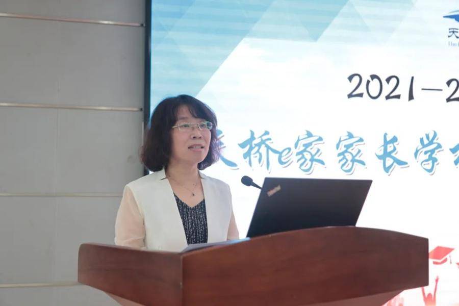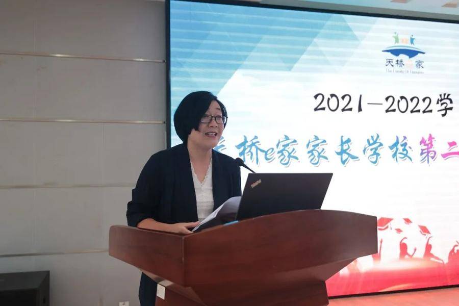 天桥区教育教学研究中心副主任张婷婷做《心心相印 同向而行》主题发言,她从“顶层设计、专业学习、新轮调研、深耕教研”等七个维度梳理总结了一年来“天桥e家”家长学校建设所做的努力与取得的累累硕果。