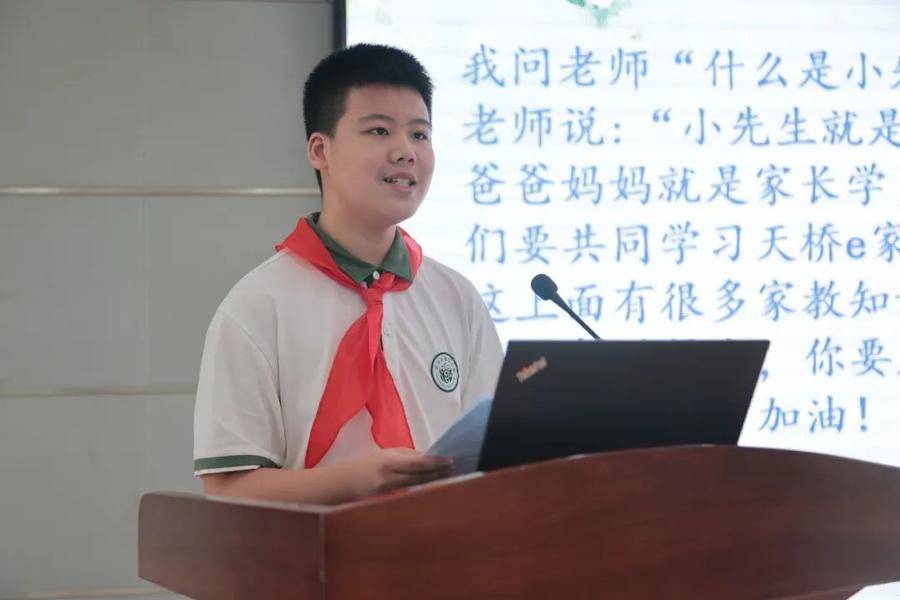小先生代表天桥区宝华小学何永浩;家长学员代表天桥区实验幼儿园高莉;指导师代表济南锦苑学校中学部王政;星级家长学校代表天桥区实验小学杜曦依次上台做分享发言。