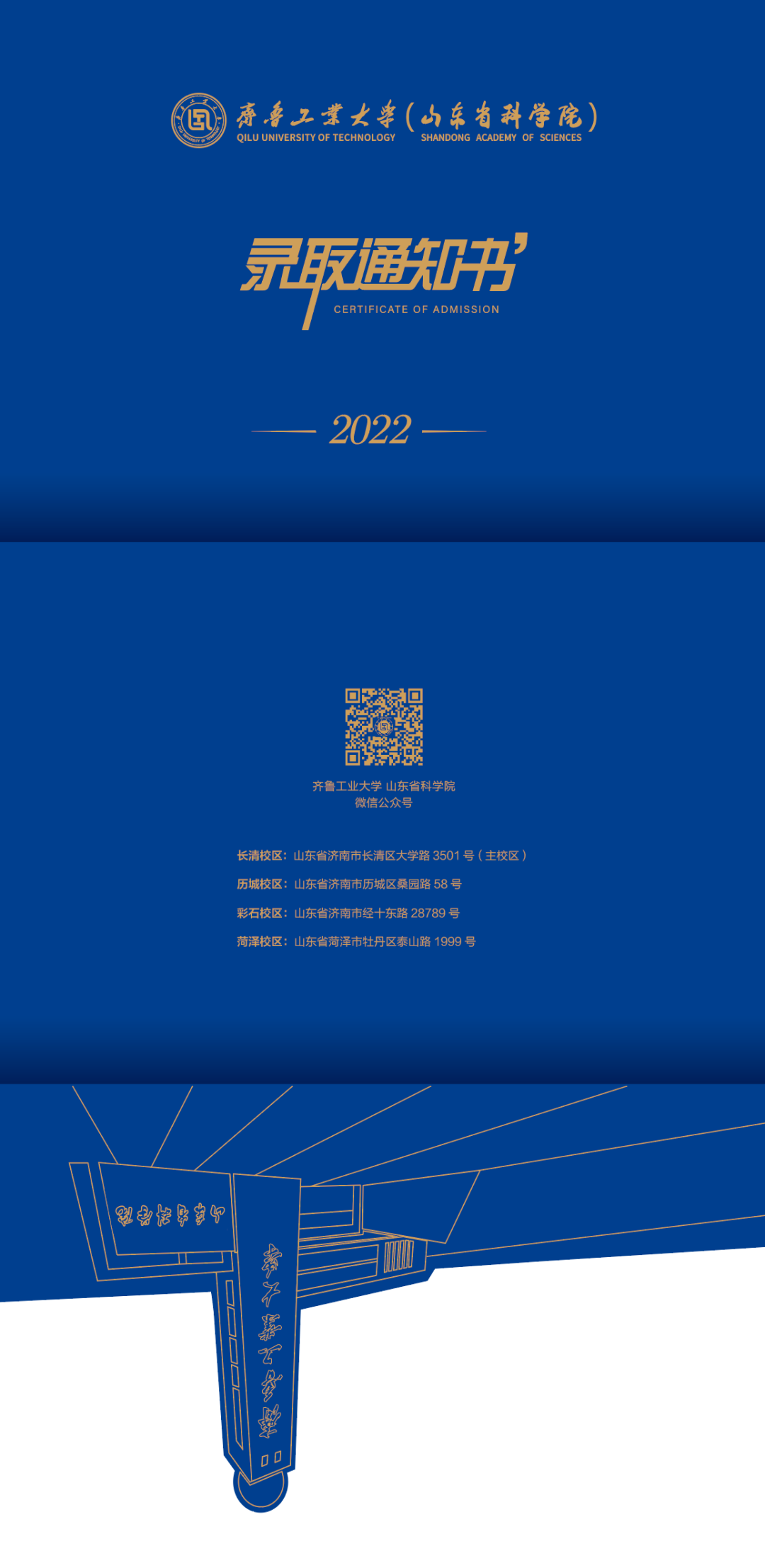 “工大蓝”惊艳亮相!齐鲁工业大学2022年录取通知书来了