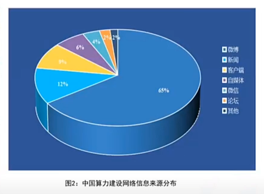 从中国算力建设网络信息来源分布可知,微博是算力建设传播的主要平台。此外,抖音、快手、微信视频号等自媒体平台,依托短视频、直播、图文等各类新型传播方式,凭借传播速度快、信息散发覆盖面广、交互性强等特点成为民众获取算力相关信息的重要渠道。