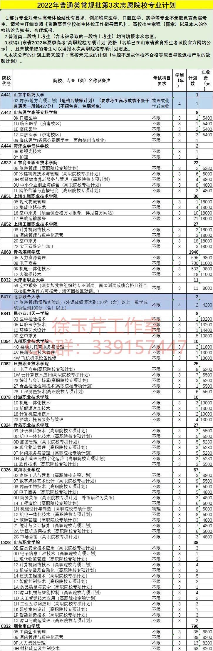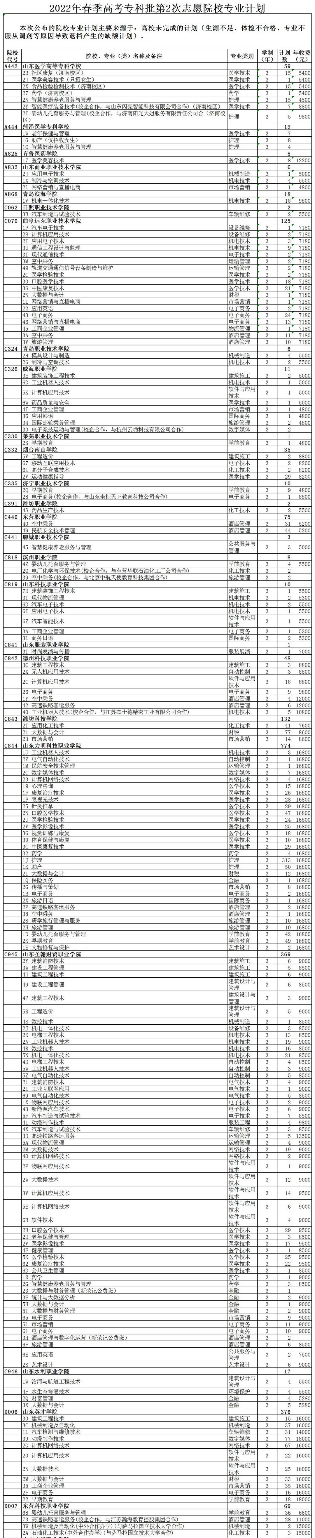 8月1日下午,山东省教育招生考试院公布了普通类、体育类常规批第3次和艺术类、春季高考专科批第2次志愿院校专业计划(其实也就是缺额计划)。