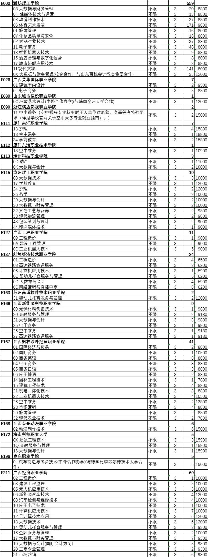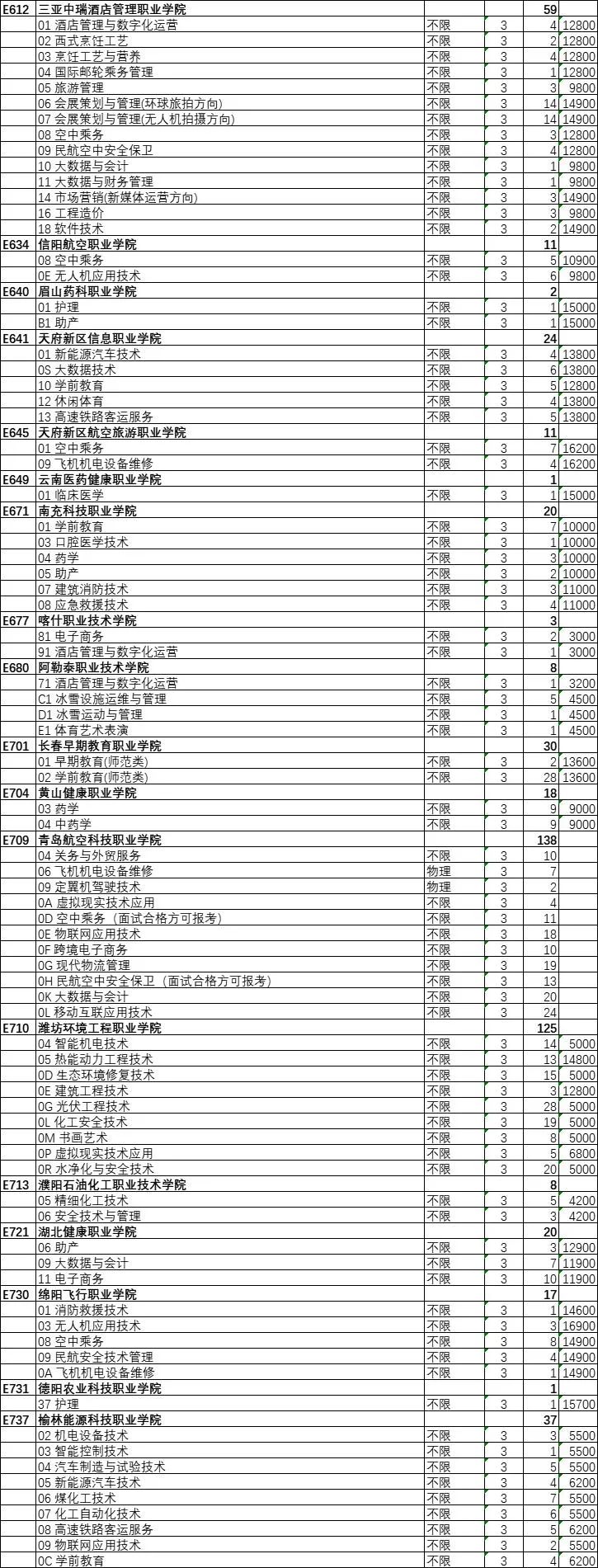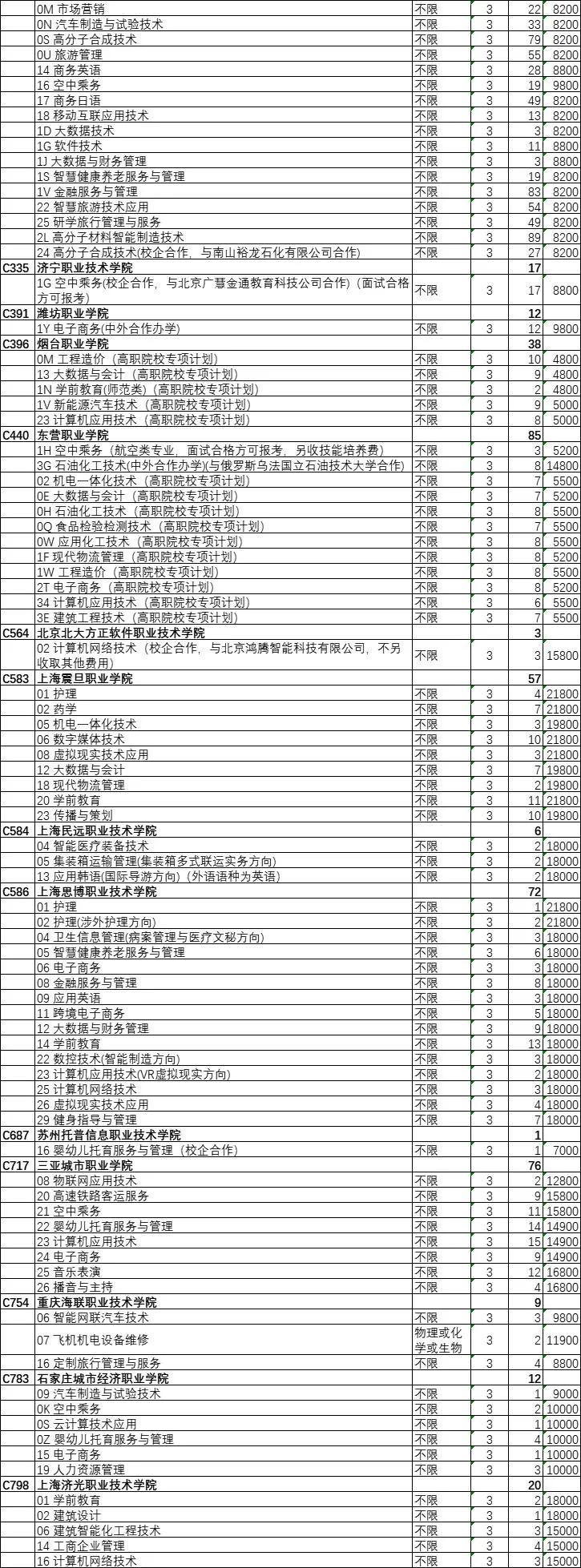 2022年春季高考专科批第2次志愿院校专业计划