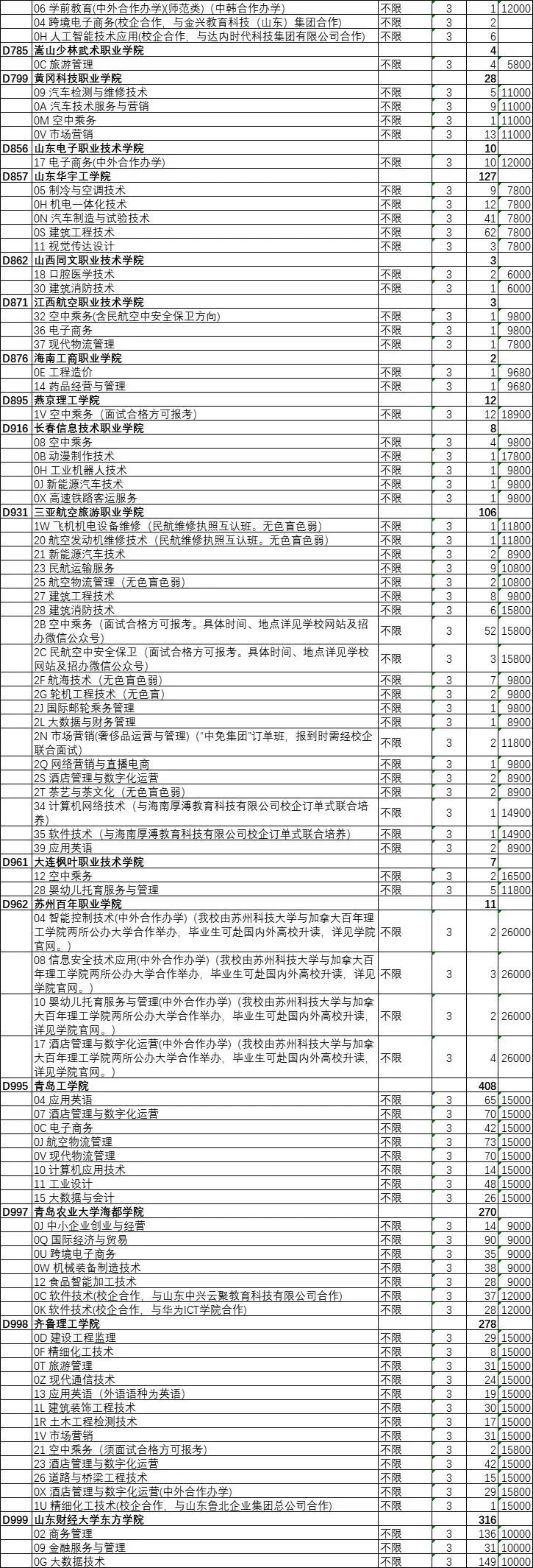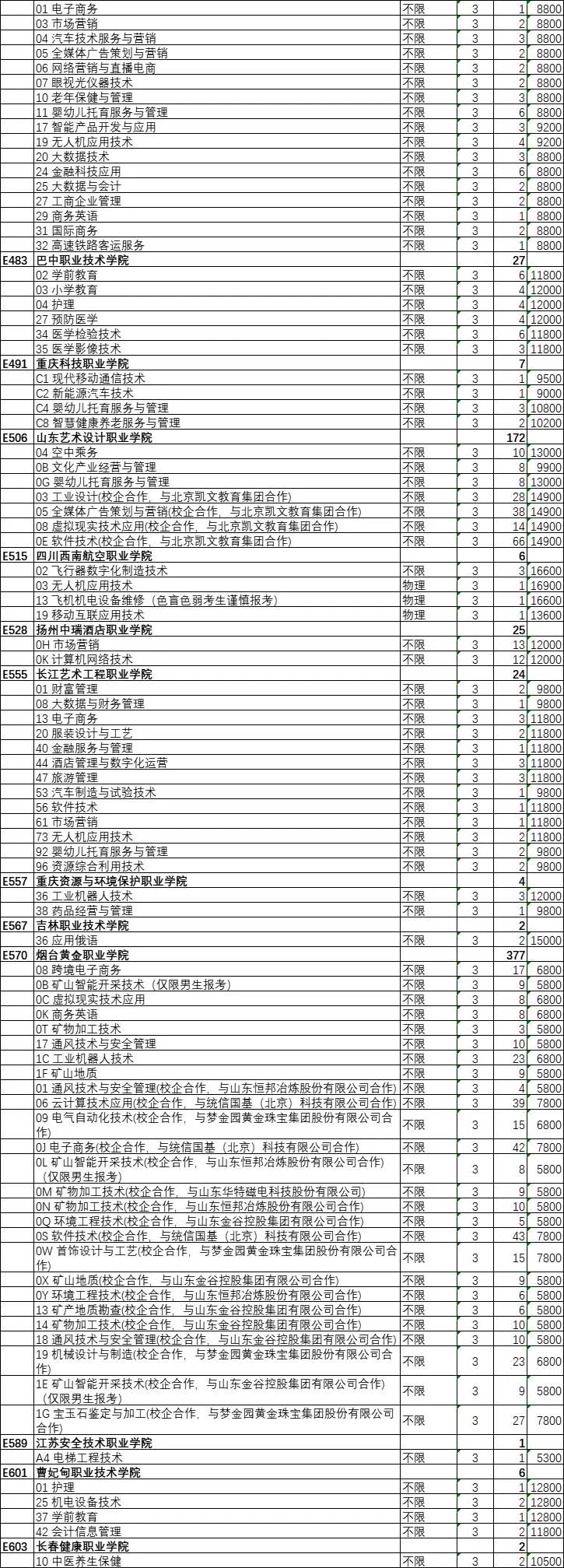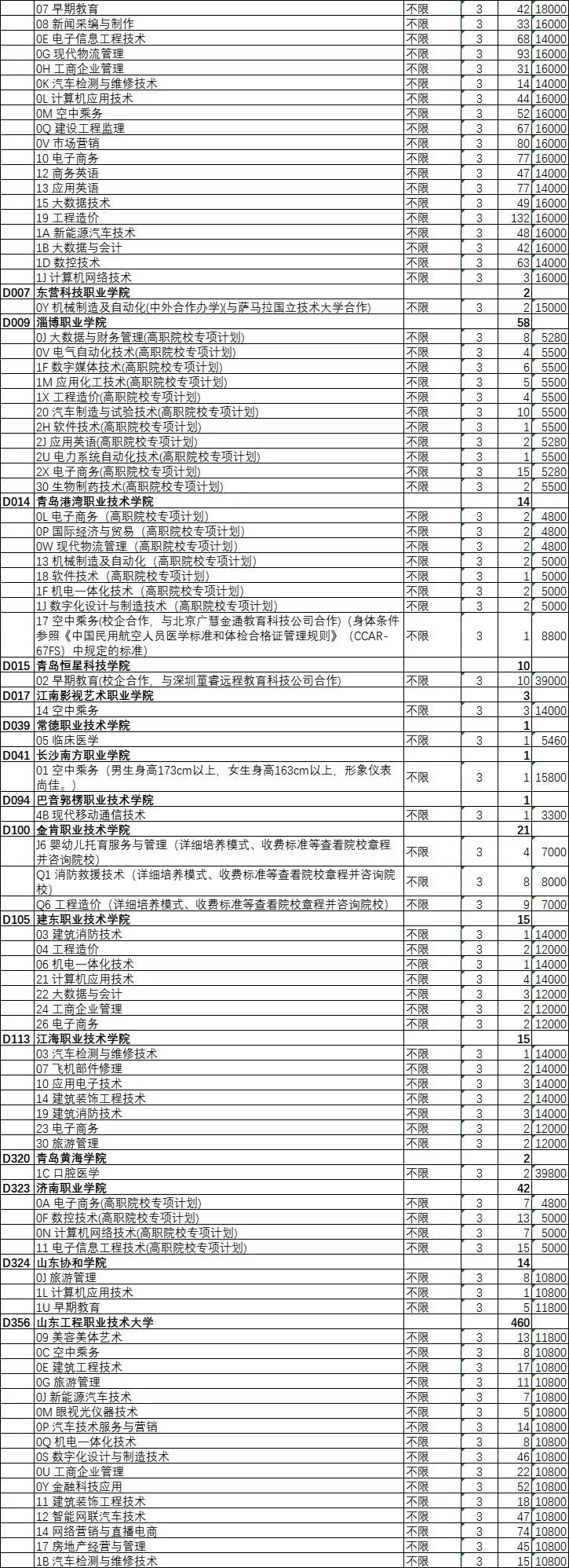 山东艺术设计职业学院、山东英才学院、烟台黄金职业学院缺额计划数均超过了200个。