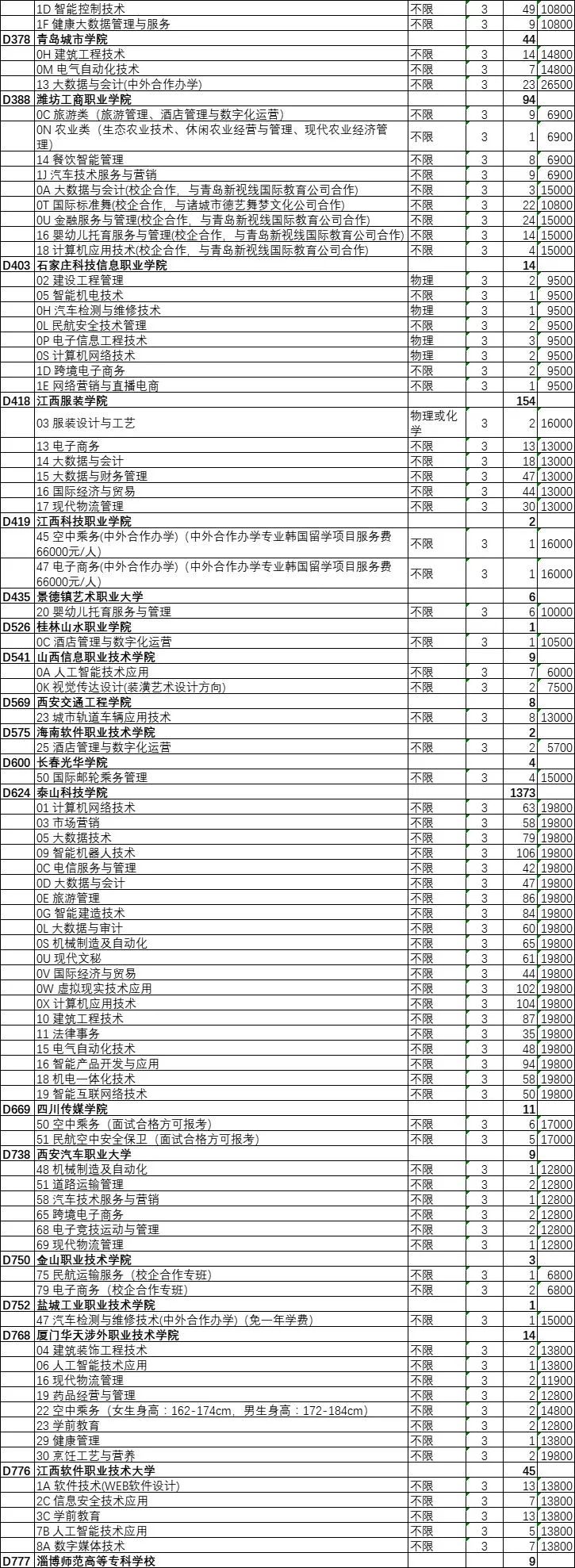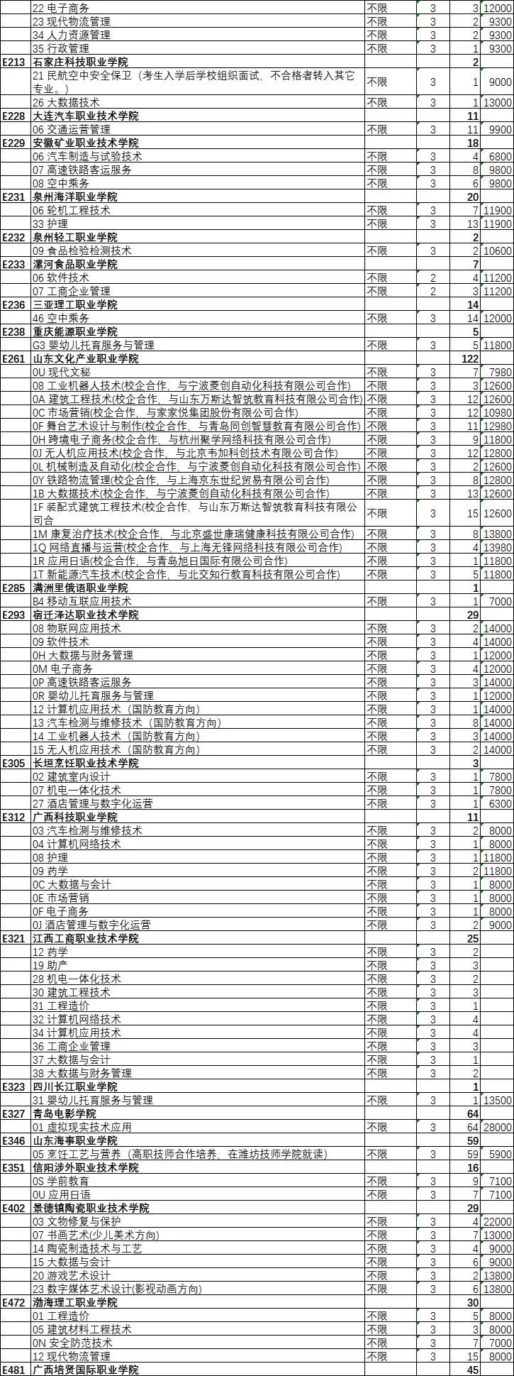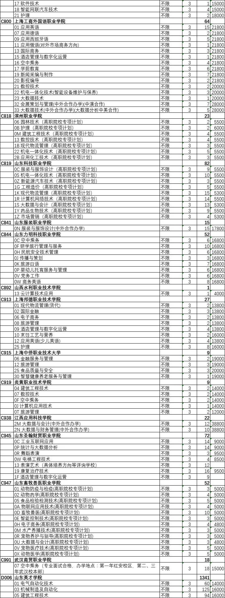 山东艺术设计职业学院、山东英才学院、烟台黄金职业学院缺额计划数均超过了200个。