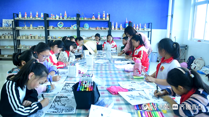 沂源县振兴路小学开设的美术社团,吸引了一大批感兴趣的孩子参与。(资料片)