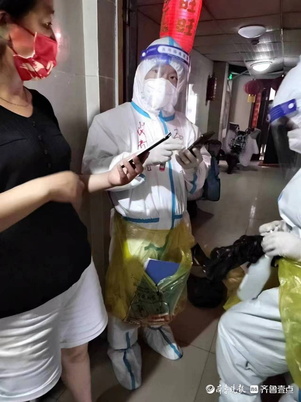 张清院担当志愿者以后,每天4点钟起床负责做业主核酸样本采集工作,5点左右开始敲门入户采集核酸样本,目前,已经坚持服务了第9天。
