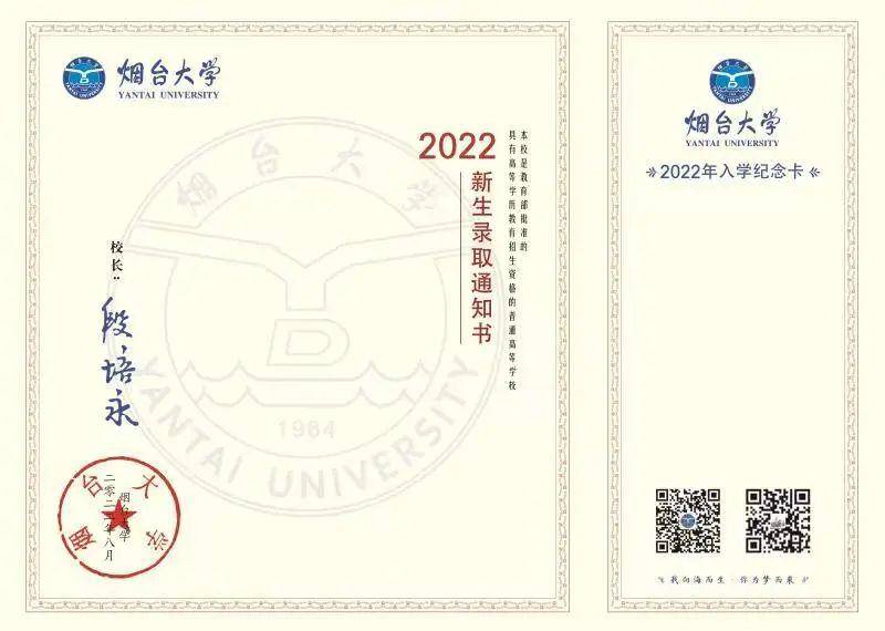 烟台大学2022年新生录取通知书
