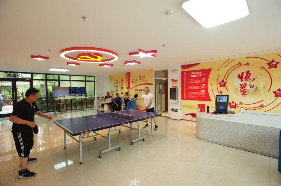 除了公益课堂,红色物业服务中心还设有国学大讲堂、心理咨询师、法律咨询室、幸福里食堂等区域。“我们下楼步行三分钟就能到。”虽然到了晚饭的点,但业主杨先生还在过够球瘾,嚷嚷着要跟对面的邻居再玩上几回合。杨先生称,家里要是没事,他能在服务中心呆上一天。“中午有食堂,有菜有汤,我们老年人还有优惠价,球打累了,我们还能下会棋。”