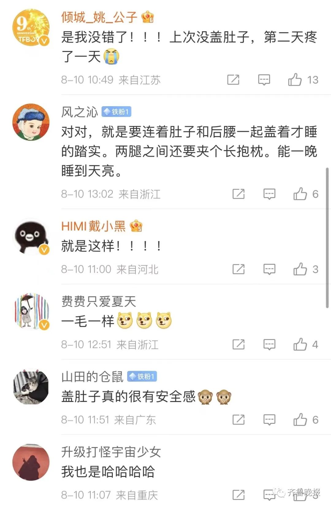 “肚子一定盖好!”
