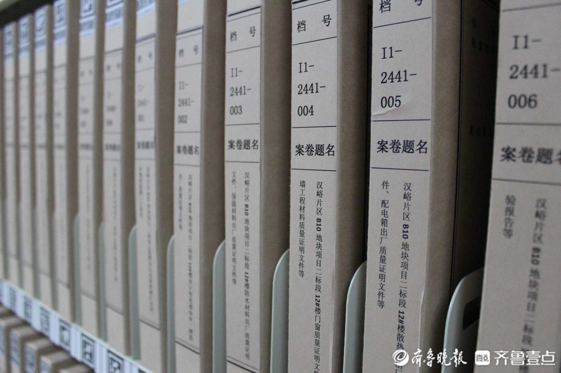 在纸质档案库房里,记者看到了10年前开始建设的汉峪金谷的档案。汉峪金谷体量庞大,其档案数量也多得惊人,超过6000标准卷。在这些档案里,小到一根钢筋的标号,大到各类管线的走向,都有记录。