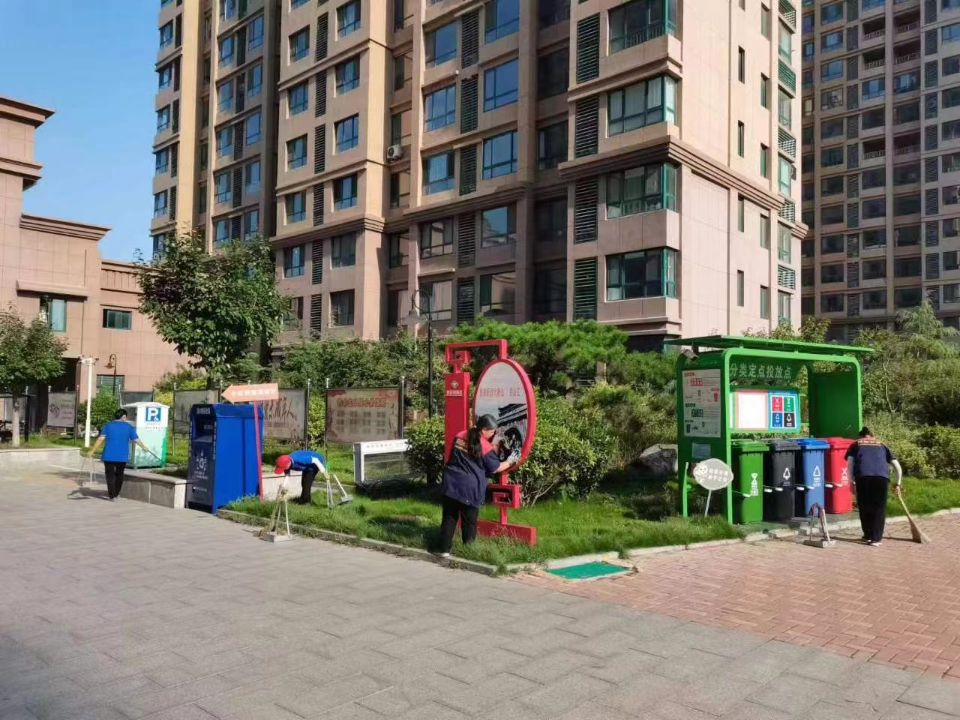 泰安鸿瑞物业服务的华天御园小区工作人员正在忙碌。