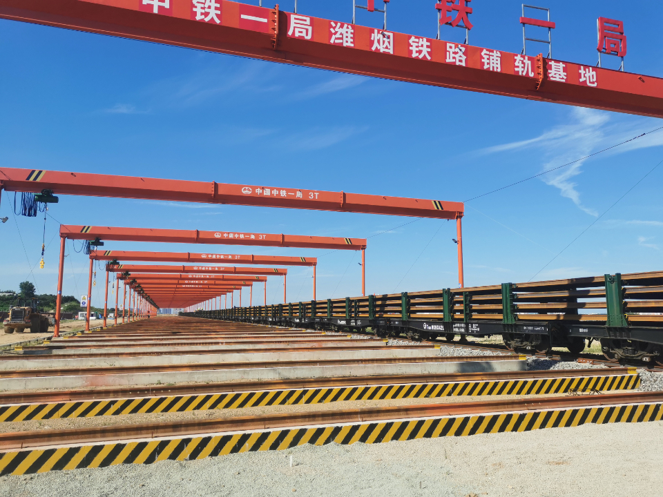首批运送的钢轨均为500米无缝长轨,14公里。钢轨为鞍钢生产百米轨,运抵国铁济南局集团公司桑梓店焊轨基地后,焊接为500m长钢轨,通过T11平板车运抵蓬莱铺轨基地。长轨进场标志着潍烟铁路钢轨的生产、焊接、运输渠道已顺利打通,潍烟铁路正式进入长钢轨存储阶段。截至目前,潍烟铁路线下工程基本完工,无砟轨道、四电、站房工程均已全面开工,计划明年6月份开始铺轨。