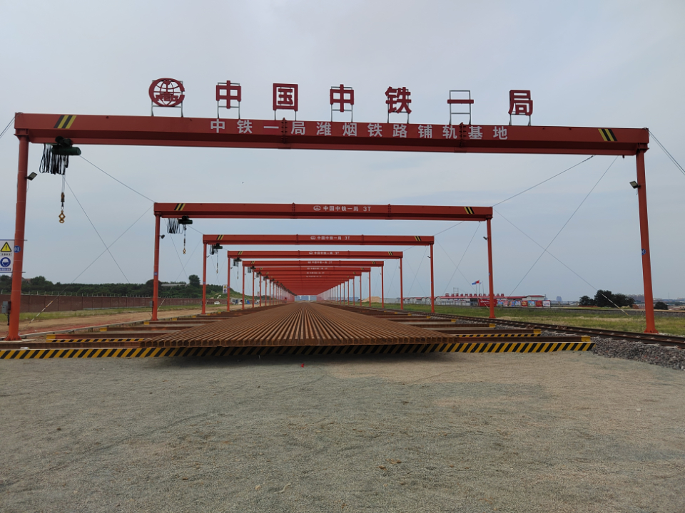 潍烟铁路首列500米长轨列车到达蓬莱铺轨基地