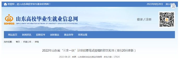 关于2022年山东省高校毕业生“三支一扶”