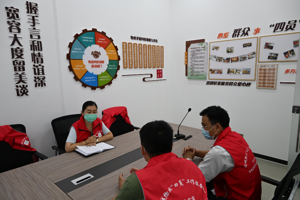 在任城区“红色物业”党建服务中心,调研人员听取了任城区物业大数据可视化监管平台讲解介绍。该中心设置了物业服务窗口,开设热线电话,受理群众和物业服务企业诉求,还设立了任城区“红色物业”和为贵调解室、物业简易法庭,调解审判物业服务纠纷案件。