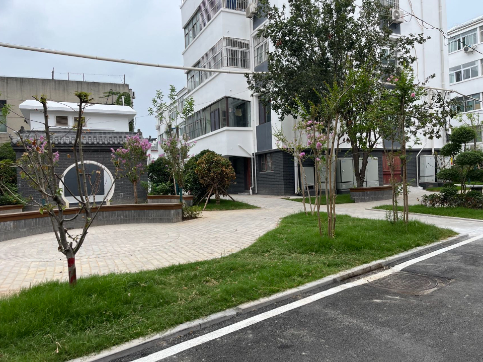 调研人员一行从北门小区的新大门开始了这个房龄已40多年的老旧小区的换新之旅。这个建于20世纪80年代的小区,设施老化、环境脏乱差问题突出,被列为济宁市老旧小区改造示范项目。进行老旧小区改造时,这里做足了前期征求居民意见的工作,充分满足业主们基础类、提升类、改善类的小区改造需求,多次召开业主大会讲解改造方案,改造方案向全体业主进行公示。在这里,楼栋之间的区域得到充分改造利用,原先被楼栋之间的矮房挡住需要绕墙回家的老居民们终于可以直进直出。楼栋之间有了新的太阳能电动车棚、新施划的车位、新的小花园。能看见的“面子”新了,更重要的是已经使用几十年老化严重又看不见的“里子”也得到了更新。小区的各类管网换新同步设计推进,在有限的小区道路空间下,各类管网实现了微管廊施工,集约使用地下空间。小区新的“红帆驿站”正在建设,社区服务也将更加丰富。
