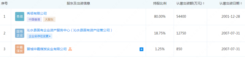 企查查显示,沁和能源集团有限公司成立于2001年12月28日,注册资本68000万元人民币,法定代表人张高平。该公司的股东是秀领有限公司、沁水县国有企业资产服务中心(沁水县国有资产经营公司)和晋城中嘉煤炭实业有限公司 。