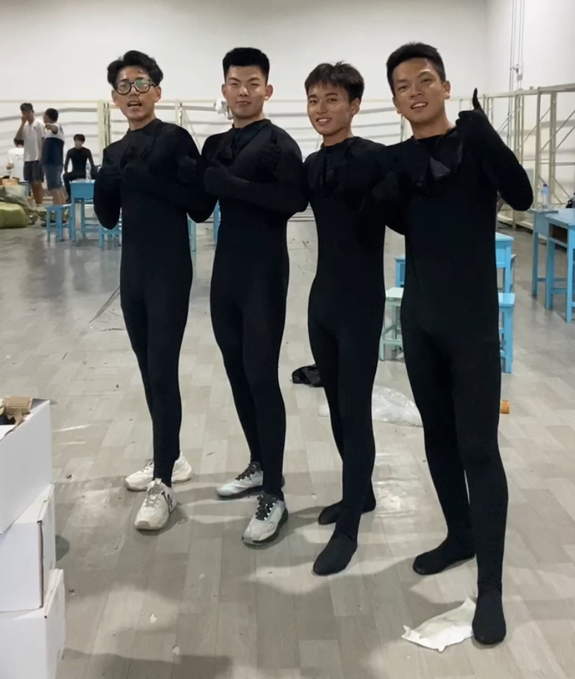 如果不是特地了解,或许很难注意到,这样的“隐形者”一共有36名。他们出现在了第二幕《朝阳似我》的开场,以及《闪耀》。翟玉开说,作为“隐形者”最难的地方是控制节奏。他们需要根据灯光,或者演员的表演节奏,尽可能地隐藏自己。 “观众看不到我们,那我们就成功了。”