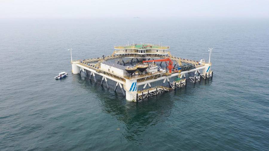 起初,肖显明不了解“经海001号”究竟是什么,只知道它是一个在深远海上的巨型海工装备,养殖的黑鲪鱼相当于野生鱼。