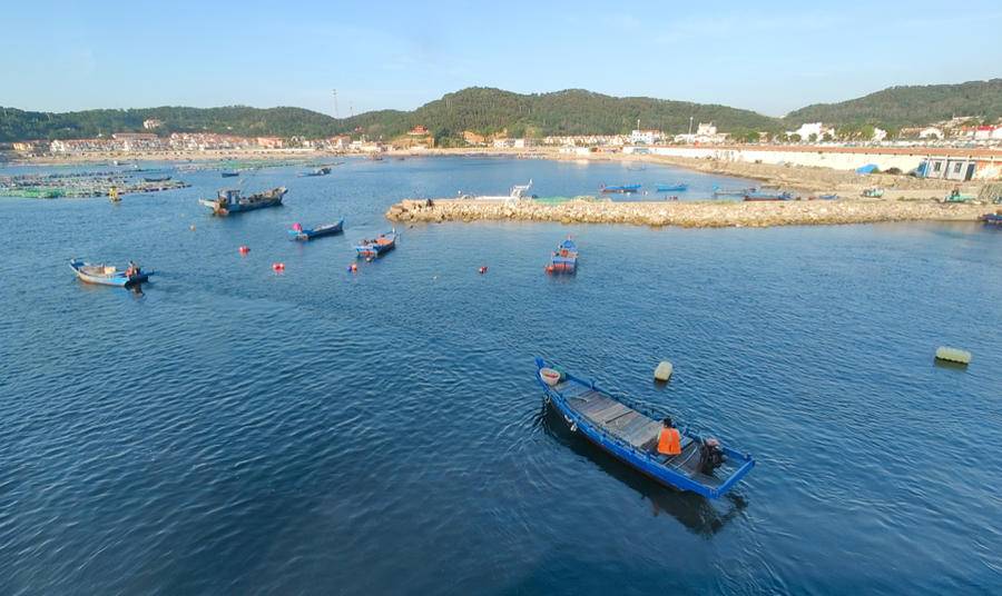 2021年,一艘快艇劈波斩浪,终于驶入南隍城岛。烟台经海海洋渔业公司看到了南隍城岛海域的资源优势,计划投资建设烟台海洋牧场“百箱计划”首座深海智能网箱“经海001号”。