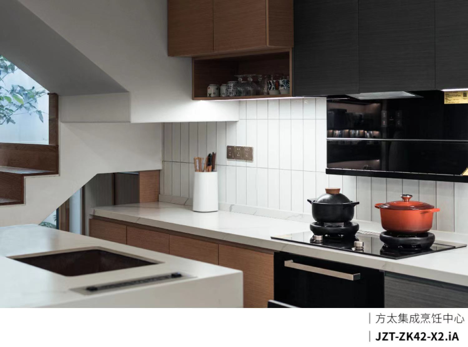 在此次红墨斗大赛的入围作品中,不乏风格鲜明、构思巧妙的上乘佳作,描绘出设计美学与理想人居碰撞的无限可能。陈静设计师的《素心乡居,心归自然》,采用“外部遮挡,内部通透”的手法,实现了庭院、客厅、厨房餐厅等居住单元的有机统一,高颜值和极具设计感的家电产品赋予了家居设计更多可能性。于开放式厨房中巧妙融入了方太集成烹饪中心,让厨房空间去繁从简,工业制品恰到好处地融合进中式家居美学的诗意氛围中,无形中为“中国之美”的典雅赋予了科技创新的新潮温度。厨房从过去的单一烹饪功能,转变为具备就餐、亲子、聚会、社交、娱乐等家庭核心功能的 “新家庭中心”,为屋主营造格调雅致的居家环境的同时,凸显出设计师对于人文关怀的思考。