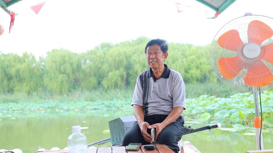 68岁的司方汉有了新营生——船夫加导游。他每天开着船载着游客,穿梭于蓑衣樊村和淄博天鹅湖温泉国际慢城之间。