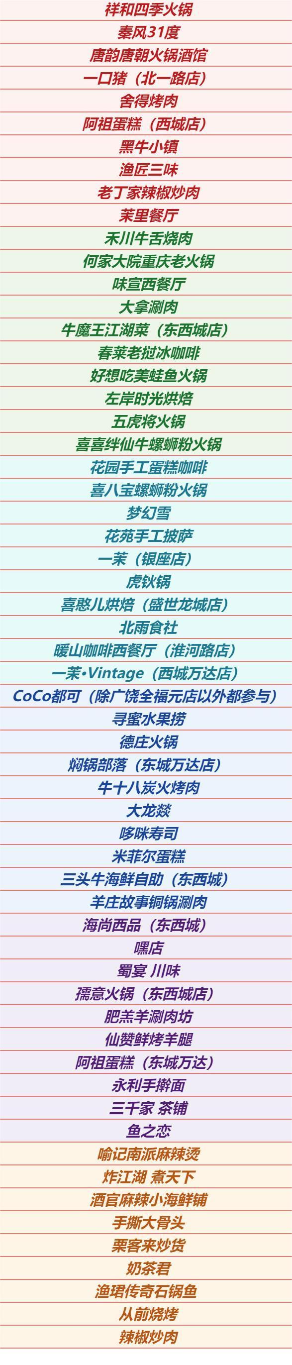 目前参与商家如下: