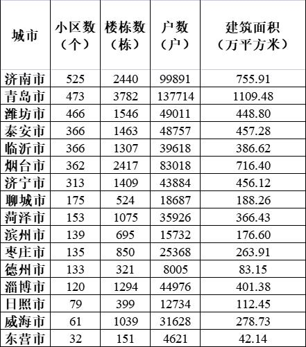 改造涉及居民户数最多的则是青岛,惠及137714户,其次是济南,惠及99891户,烟台位居第三,惠及83018户。从计划改造的建筑面积看,青岛最多,为1109.48万平方米,其次是济南,为755.91万平方米。