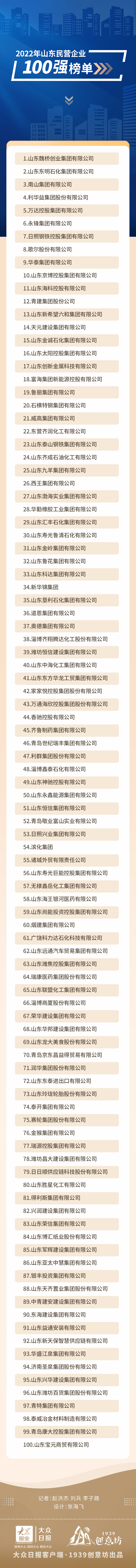 9月21日,省委、省政府在济南召开山东省民营经济高质量发展工作会议。会上,为我省民营企业百强代表等颁奖。山东省工商联发布了2022年山东民营企业100强榜单。名单如下: