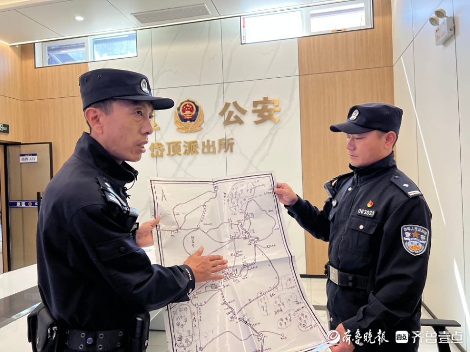 张连波说:“岱顶派出所海拔1545米,在极端天气下,网络信号会受到影响,通过平时积累,我们专门画了一张岱顶平面图,为游客提供了更为方便的服务。”根据张连波介绍,这几年这张“救助图”对办案提供了极大的帮助,在日常巡逻中,他会在图中不断更新、标记新的事物,不断“与时俱进”。