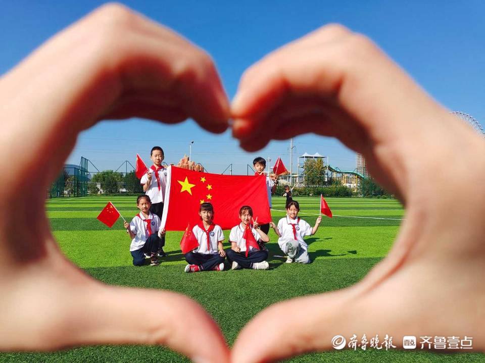 9月30日,情报员“韩玉荣”向齐鲁晚报官方客户端齐鲁壹点情报站发来情报,潍坊市潍城区西关小学的少先队员们满怀对祖国的热爱,与国旗同框,为祖国庆生。