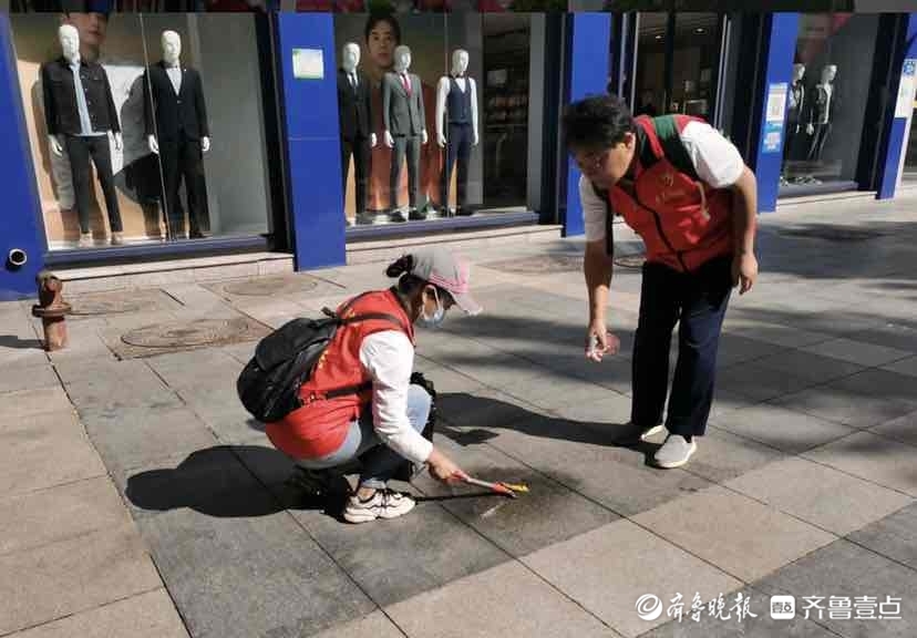 9月30日上午9:30,济南市历下区泉城路一带,闪动着一群“红马甲”的身影,他们有的拿着镊子捡拾烟头、落叶、垃圾;有的拿着扫帚、簸箕、抹布,“擦”亮城市容颜。国庆节到来之际,济南市城管局联合齐鲁晚报·齐鲁壹点发起“我为祖国庆生暨创建文明典范城市”城市环境大扫除志愿服务活动,济南市城管系统和齐鲁晚报·齐鲁壹点志愿服务队、齐鲁志愿者等济南多个社会志愿服务组织积极响应,60余人参与此次大扫除活动。